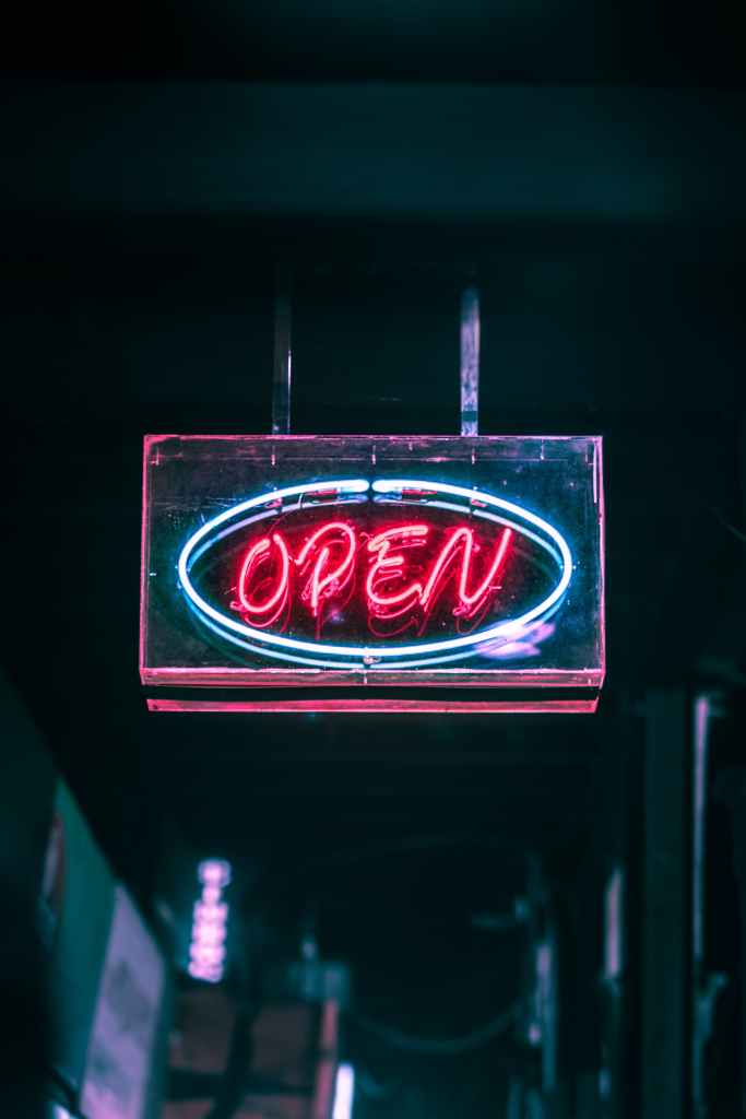 Photo by Pratik Gupta from Pexels: https://www.pexels.com/photo/open-neon-signage-turned-on-2995188/